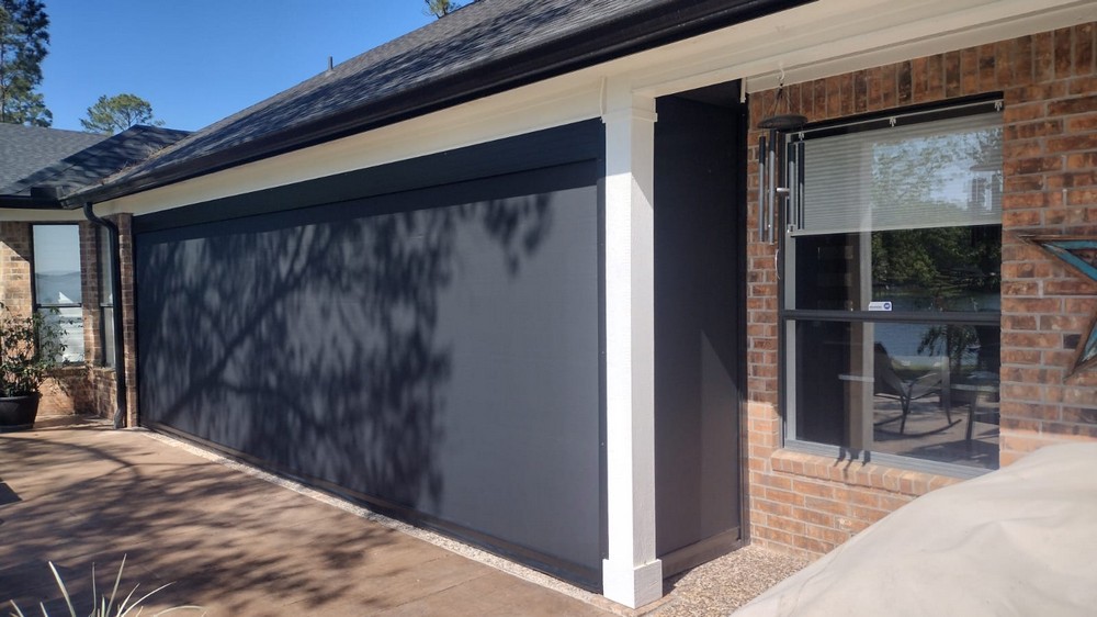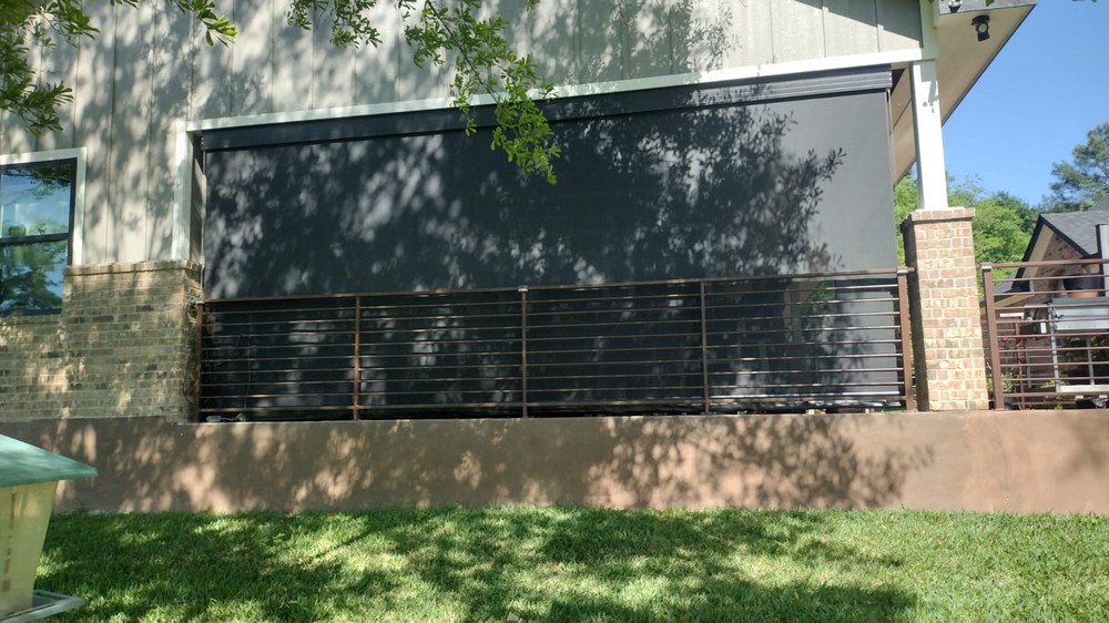 My customer has an amazing view with a beautiful outdoor area. The only problem is it was being ruined by the Texas sun. We installed motorized outdoor shades using 95% Phifer material with bronze tracks and framing with a rubber bottom sill in League City, TX. Even when it rains, they are protected.