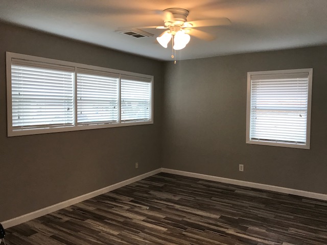 2 1/2” faux wood blinds in a beautiful home in Dickinson. The inside mounted valances provide a clean, modern look.