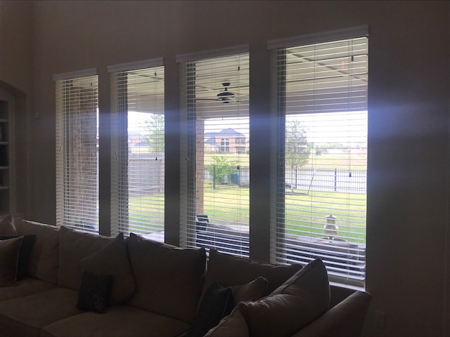 JC's Window Treatments recently completed a Faux Wood Blind installation on Noble Way Court in League City, TX. This customer chose 2 1/2" Faux Wood blinds to provide a more open view of the backyard.