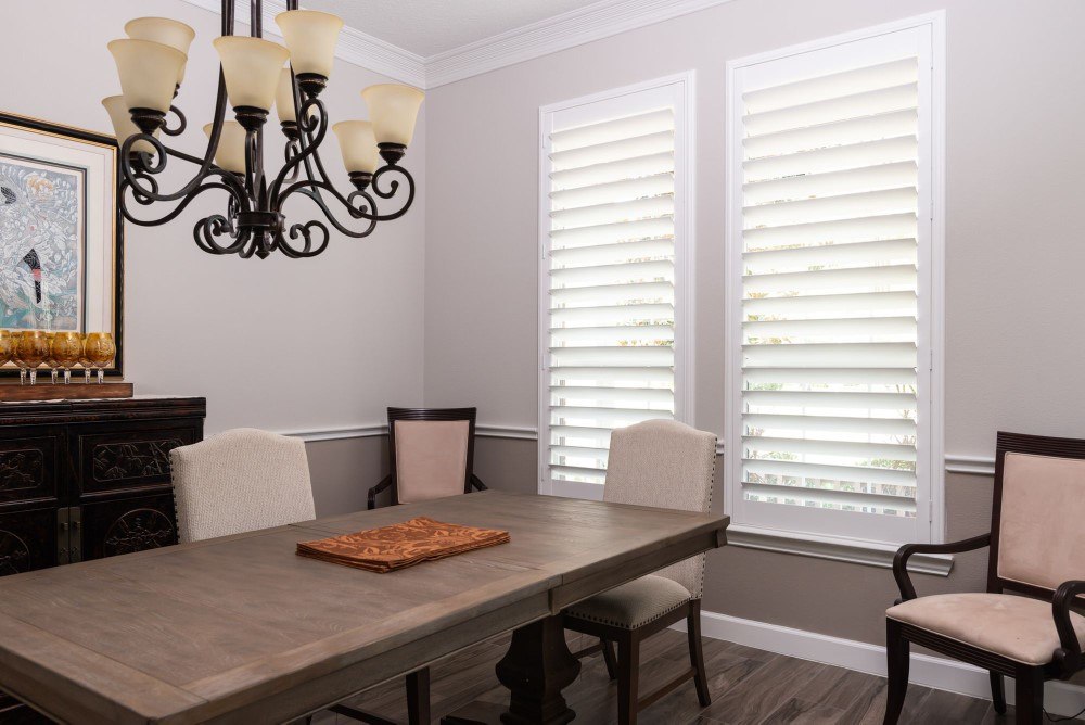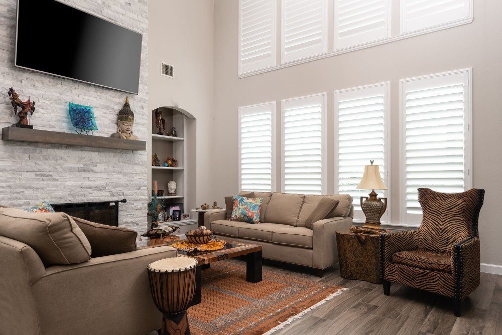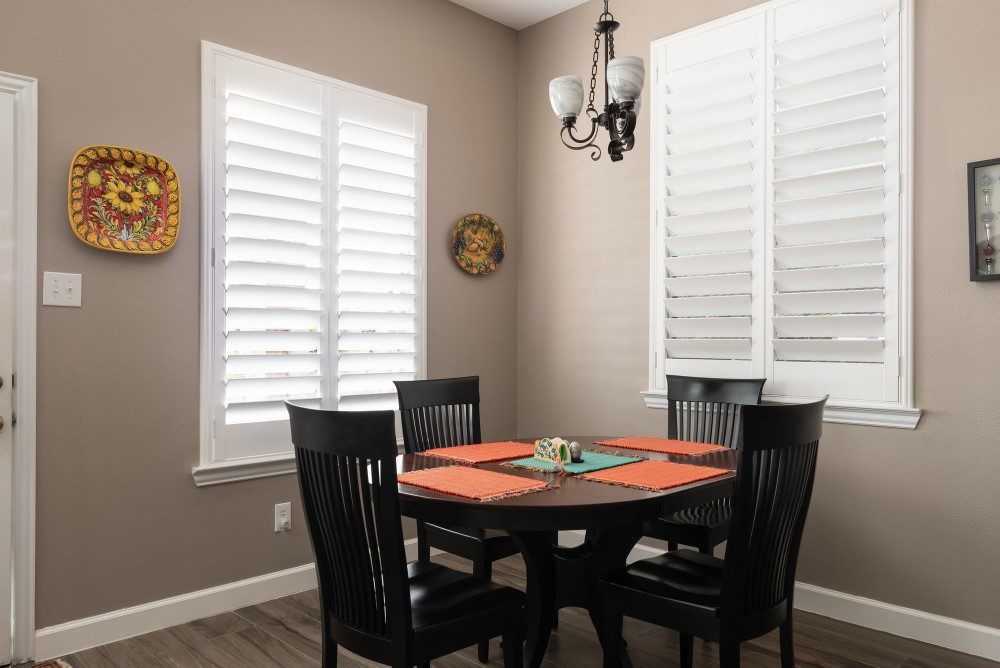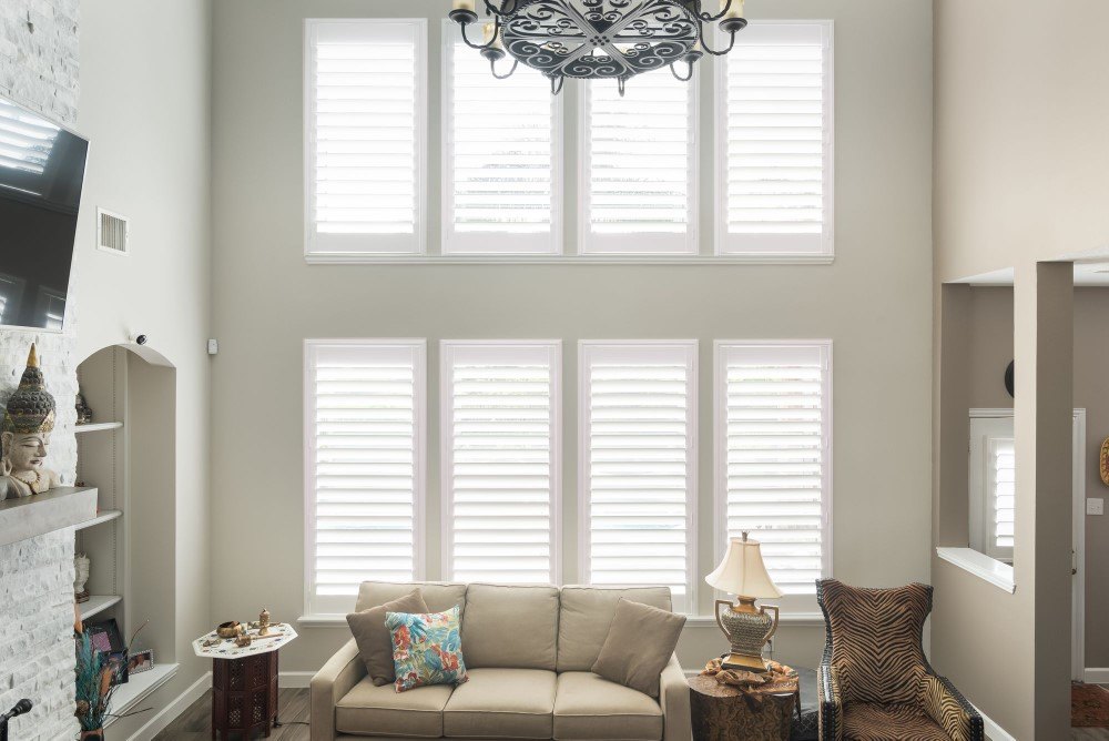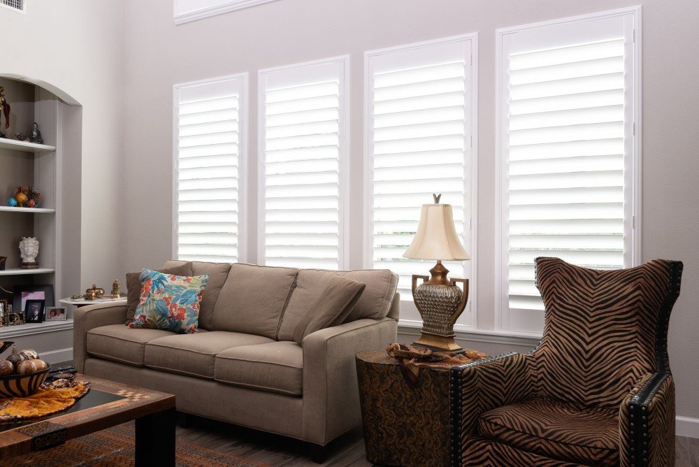 What a difference polycore shutters make in a room! The customer had draperies and shades and wanted to get away from the dust and the cleaning. We supplied her with a 4 1/2" Louver with the hidden tilt option. The shutters opened up the room dramatically. She has the best of both worlds, natural light and privacy.